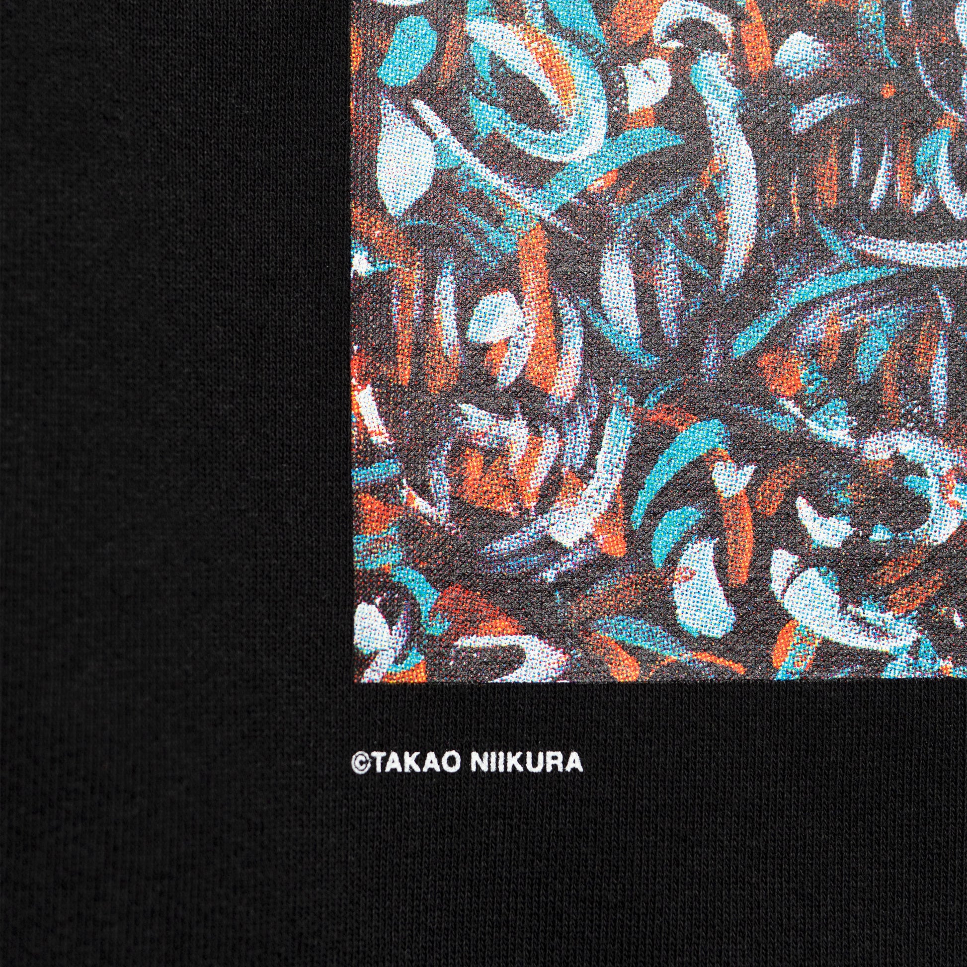 背面には、ジャケットのビジュアルにも採用された新倉孝雄氏の作品をシルクスクリーンでプリント。フロントにはVektor shopのロゴと第14弾「First Suspicion」の文字を刺繍であしらった特別な一着です。
