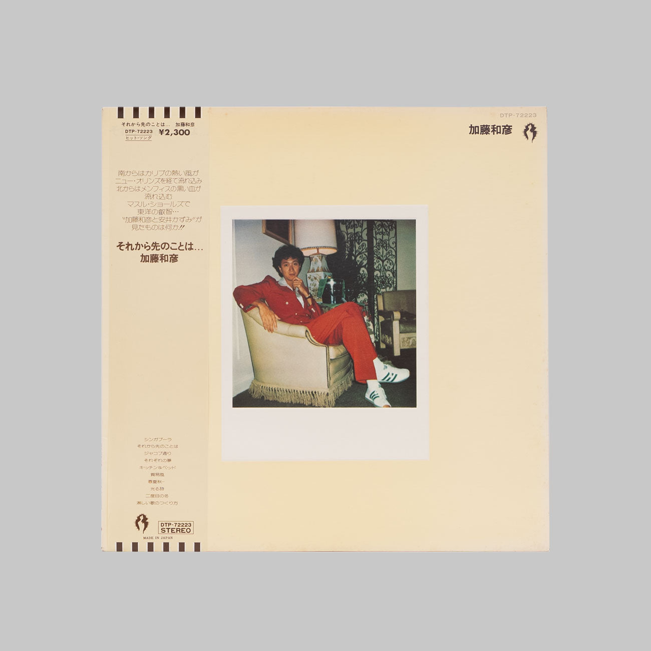 ザ・フォーク・クルセダーズとしてデビューし、その後サディスティック・ミカ・バンドを経て、数々のアーティストに楽曲を提供した加藤和彦の76年のソロ3rdアルバム。のちにパートナーとなる安井かずみと制作した最初の作品でアラバマの名門マッスルショールズ・スタジオにて現地の名プレイヤーなども参加した今聞いても色褪せない名作。「JAPANESE CITY POP」掲載。
