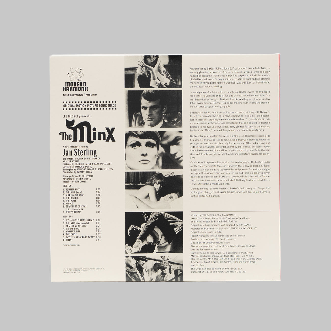 "RED RUBBER BALL"のカバーや"TURN DOWN DAY"のヒットで日本でも人気の高い米ポップ・グループ、ソフト・ロック・バンドTHE CYRKLEが映画公開前の67年に音楽を手掛けたお色気スパイ映画「THE MINX」のサウンドトラック盤。ペイズリー・サイケデリックな意匠に3声のハーモニー、時代のポップ・サイケな音像はもちろん、ジャケットの良さも相まって彼らの作品の中でも一番人気の一枚でオリジナル盤は激レア。